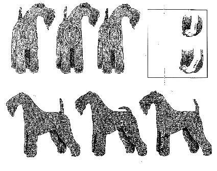 En estructura este Terrier muestra las razas de trabajo. El extremo del hombro, la parte superior del brazo y los músculos asociados deben estar planos al punto superior del extremo aproximadamente sobre el codo, como se ve en la figura 1. El húmero es igual de largo que la distancia a la parte superior del hombro, el cual lleva la pata delantera justo bajo el cuerpo. Una línea imaginaria vertical dibujada desde la parte superior del hombro hasta el suelo pasaría un poquito detrás del codo. Un perro adulto tendrá dos dedos entre el extremo superior del hombro a la cruz. Este tipo de estructura es válida tanto para belleza como para un movimiento armónico y equilibrado. Unos hombros correctos contribuyen a una línea clara y recta desde la cruz hasta los codos sin ninguna apariencia de pesadez o de músculos exagerados. Unos hombros bien insertados hacia atrás permitirán al perro moverse con unos pasos largos y libres lo que indicará poder y precisión. Unos hombros rectos no son característicos y estropean el equilibrio visual, el cuello se hará corto, la espalda larga produciendo un movimiento corto y agitado. Los codos deberán llevarse pegados al cuerpo durante el movimiento o en estático. Un frente demasiado estrecho es tan poco deseable como uno demasiado ancho. Los huesos de las patas son redondos sin ser finos o demasiado pesados. Las garras deben estar amputadas.
